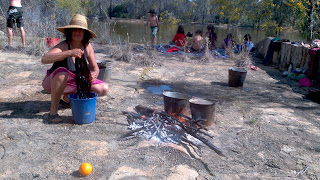 Back to empty cupboards and an empty fridge with a new level of dietary understanding from our ten week vegetarian diet with minimal milk product means there was room for some new decisions. Armed with my sour dough culture from the walk I made some bread. Then we harvested potatoes and boiled up home grown eggs we were given. Mayonnaise was easy to make and then, as if by magic, we had an organic potato salad. Abundance came also from the sea when we were given a fish on our first day back. Shopping/swapping the pantry was filling up on its own. I have always been silently dedicated to reducing our family's eco-footprint and have been blessed with a wood fired stove so I fired that up with Karri sticks (by the way, wood sticks release the same amount of carbon being burnt as they do when left to break down) and cooked our sour dough bread and made a stock from Evie's garden.